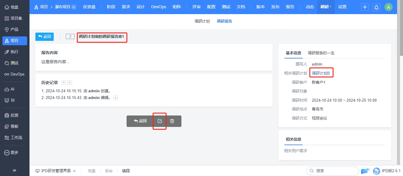 还可以点击操作栏的编辑按钮对调研报告进行编辑修改。