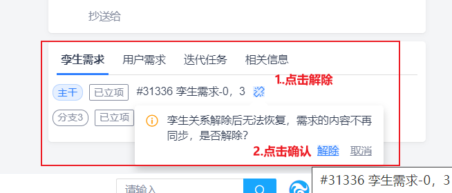 孪生需求支持手动解除孪生关系,解除后需求内容不再同步。