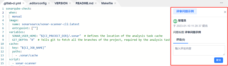 DevOps模块下使用全新的IDE风格展示代码,用户可通过文件树选择代码文件,通过分支下拉菜单切换分支。进行代码评审时可以浏览代码改动的提交信息以及关联的禅道工作项信息,并且用户可以将代码与禅道工作项建立或取消关联。本次升级还优化了提交和展示评审问题的交互,在提高用户体验的同时帮助开发人员更方便的进行代码评审。