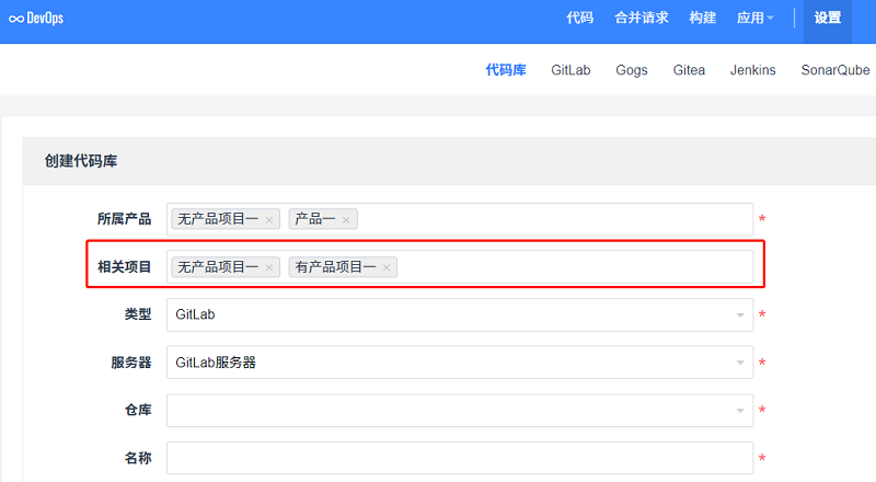 为了满足用户在项目维度管理代码库的需要,在创建或编辑代码库时可以选择相关项目。