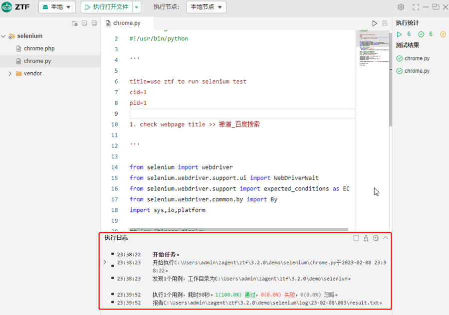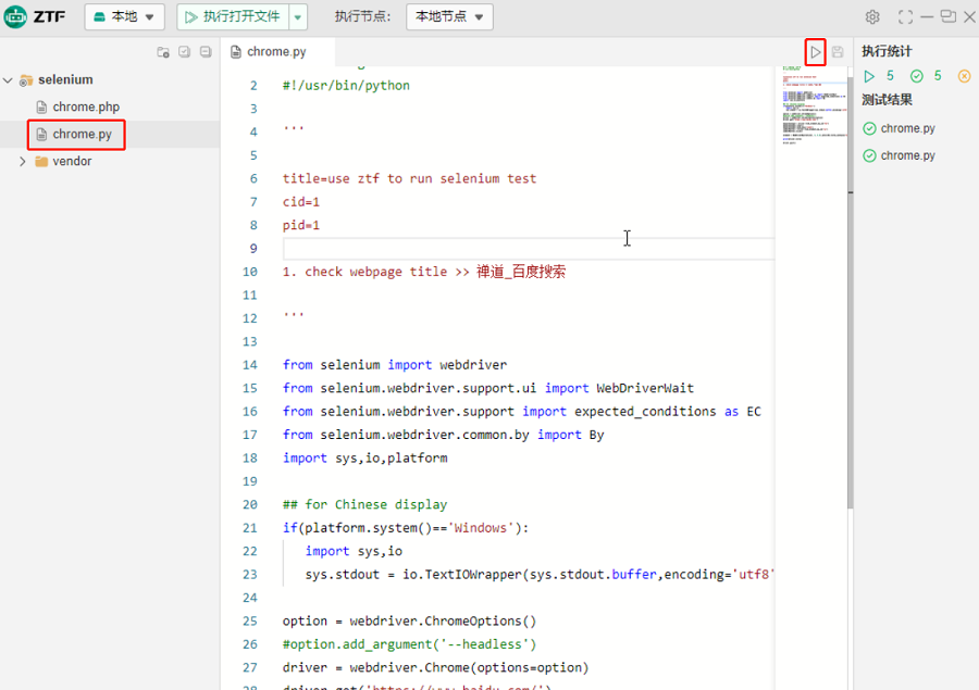 远程管理执行节点时使用ZTF客户端体验UI自动化测试。
