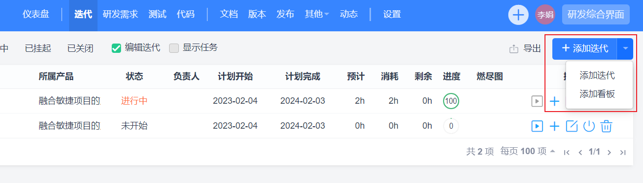 新增融合瀑布项目管理模型,瀑布式项目管理的基础上支持创建迭代与看板。