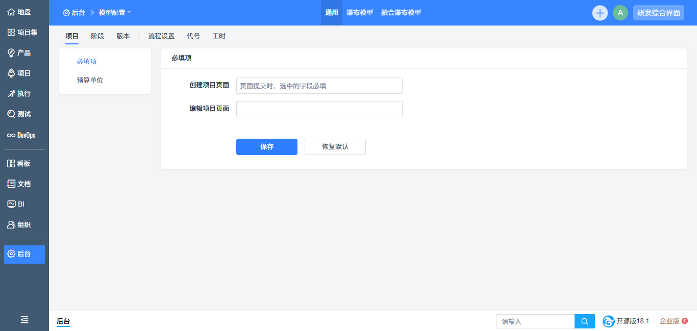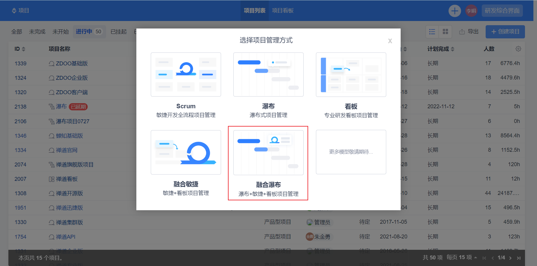 - 新增融合敏捷、融合瀑布项目管理模型,项目模型选择更灵活。