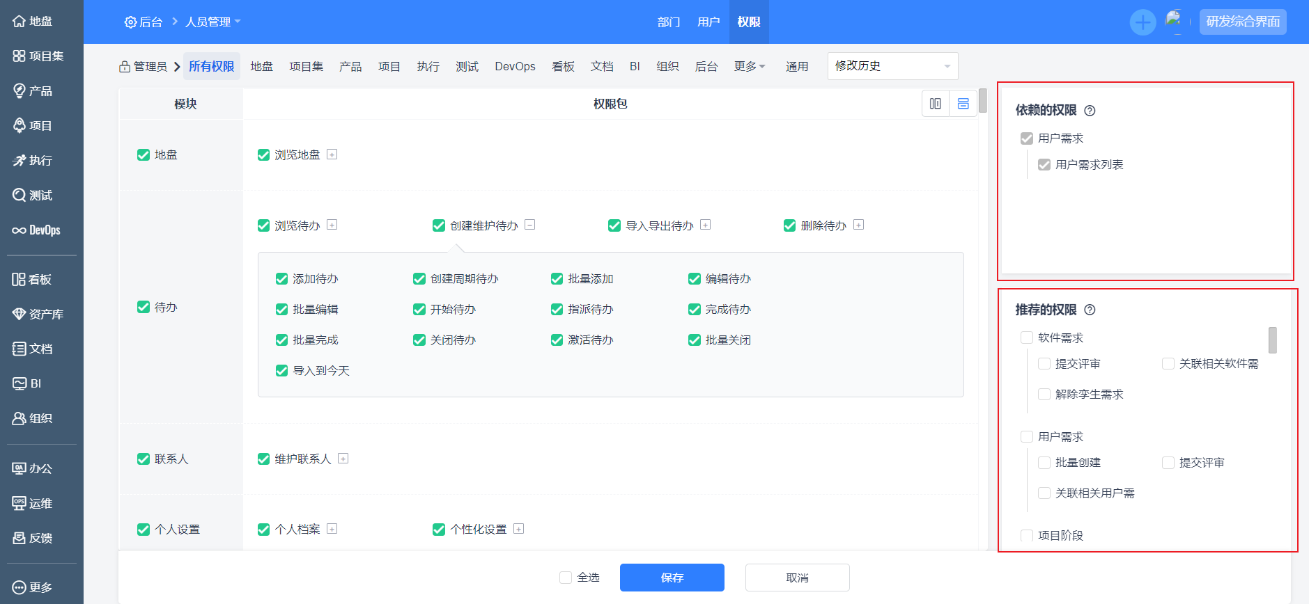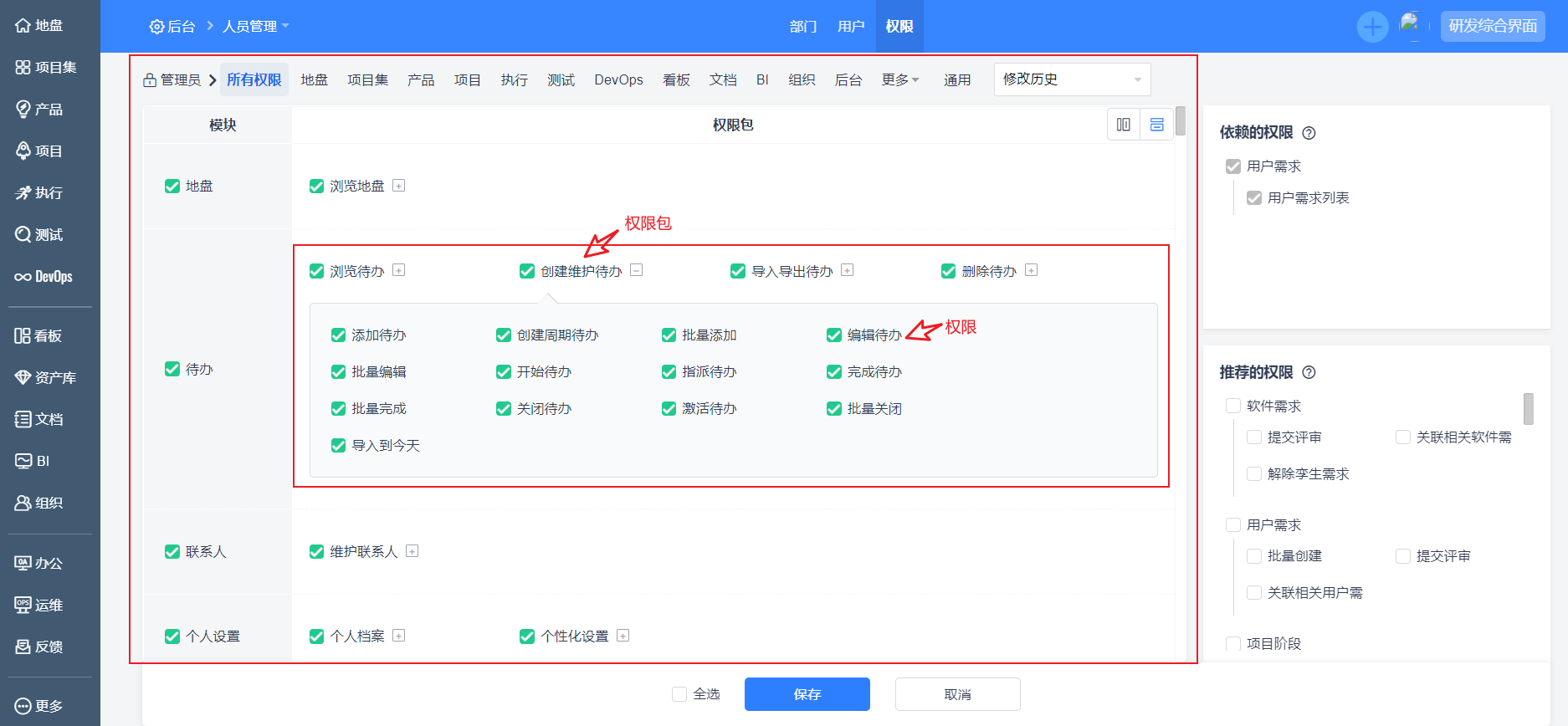 权限分配时增加依赖权限和推荐权限,系统会根据您当前配置的权限识别出您必须配置的权限(依赖权限)和推荐您使用的权限(推荐权限),以帮助您可以准确地配置权限功能。
