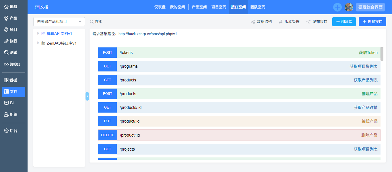 项目空间支持创建项目的接口库和接口文档,您可以在项目空间看到项目的接口文档。