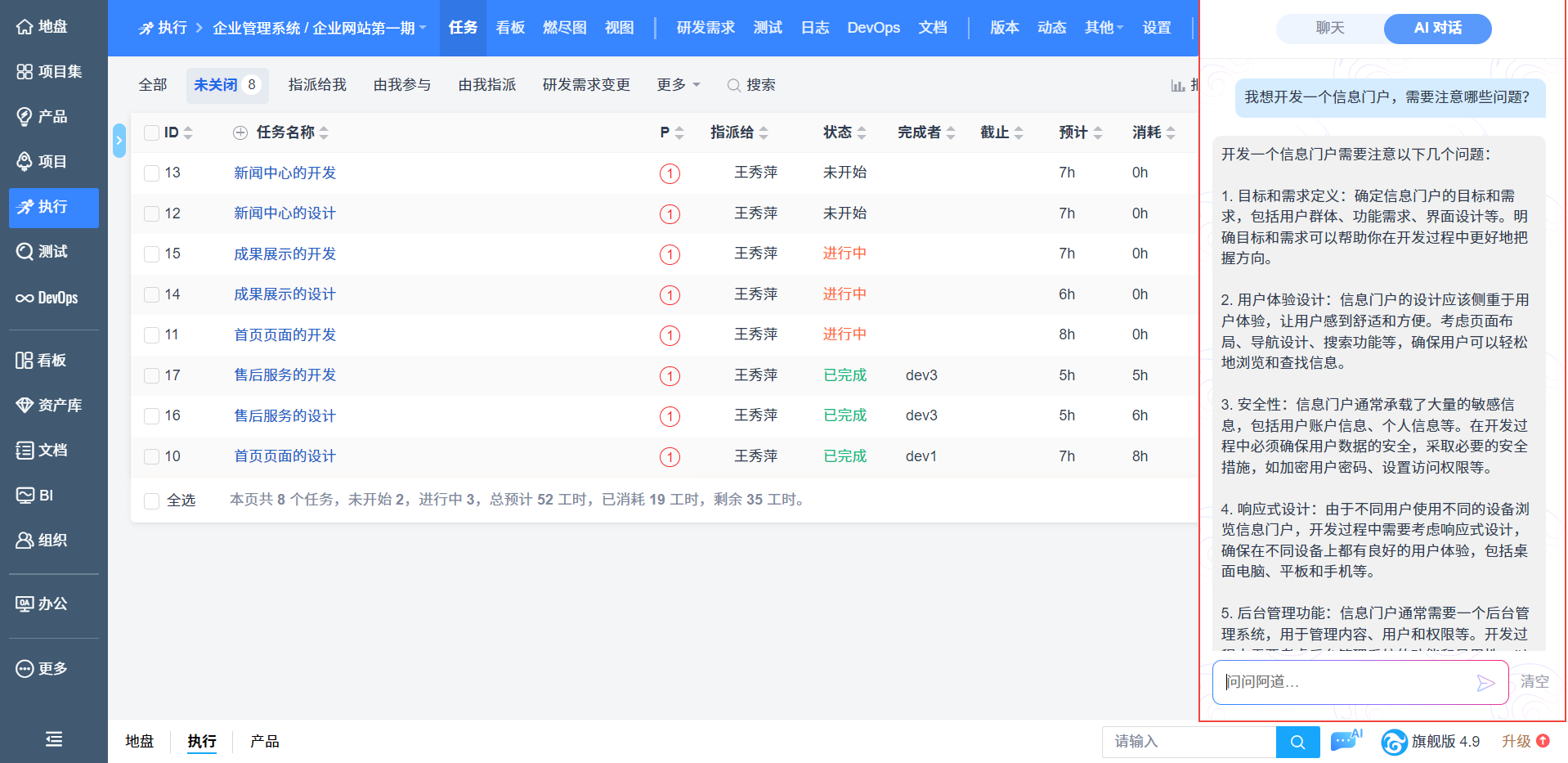 引入了禅道AI聊天功能。通过后台配置ChatGPT或百度文心一言语言模型,使用户能够在禅道中与AI进行实时交谈,无论是基于禅道内容进行辅助编辑、进一步询问还是其他创意类文字工作,禅道的AI聊天功能都可以为您提供帮助和支持。