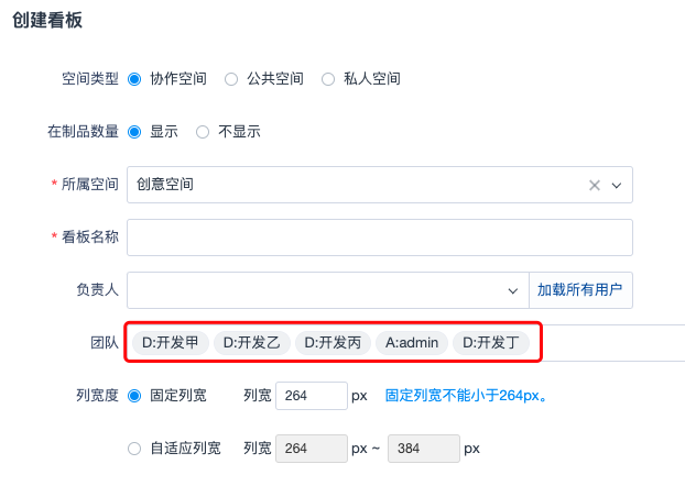 创建通用看板时可以默认带入所属空间的团队成员。