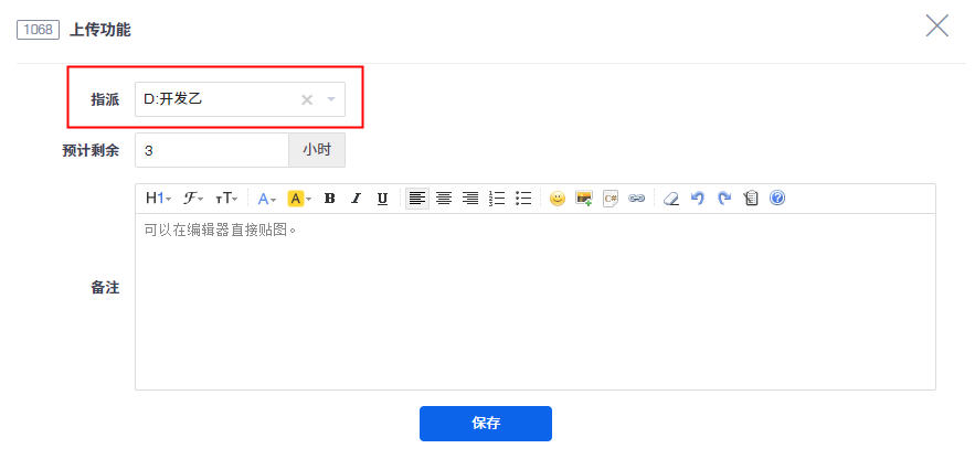 当前被指派的人员,才可以操作点击任务的指派人员名称,修改指派人员,即将任务指派给其他人。