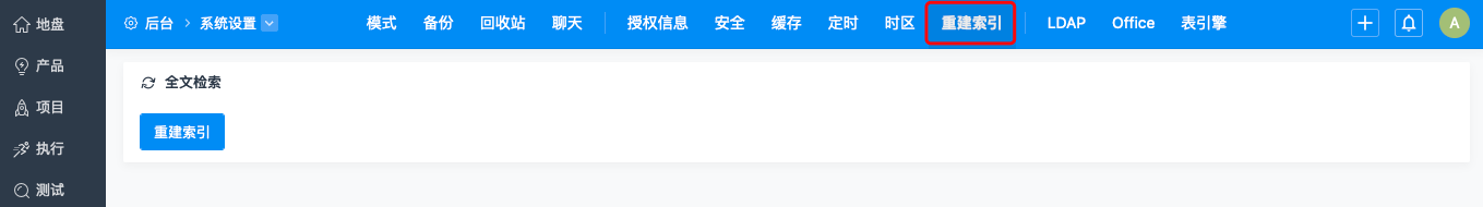 如果创建了一个对象,如需求、BUG、用例,但是通过禅道内的全文检索功能搜索不到该对象时,可以尝试重建索引。