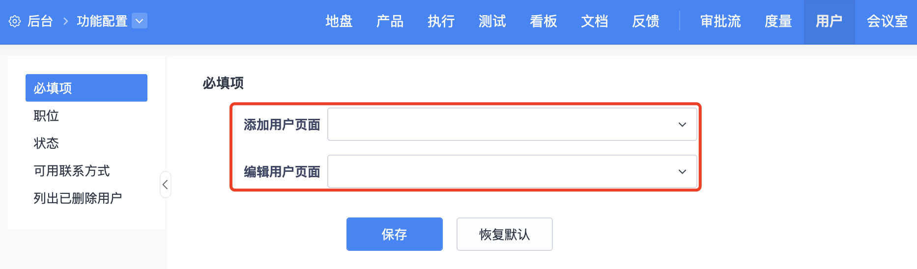在用户-必填项中可以对添加、编辑用户页面的字段进行必填项设置。