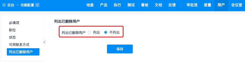 在用户-列出已删除用户可以在系统中是否显示已删除用户进行设置。