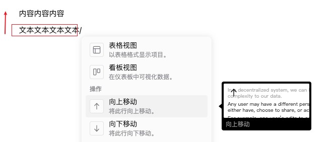 - 选中块结构中的内容,向上移动或者向下移动。