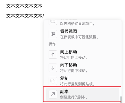 - 可以在当前行,选择副本,会在当前内容下方复制一段相同的内容。