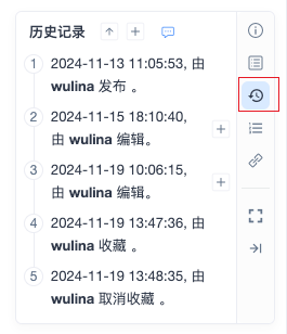 在文档详情页中,点击详情页右侧的历史记录按钮,可以查看文档的历史记录。