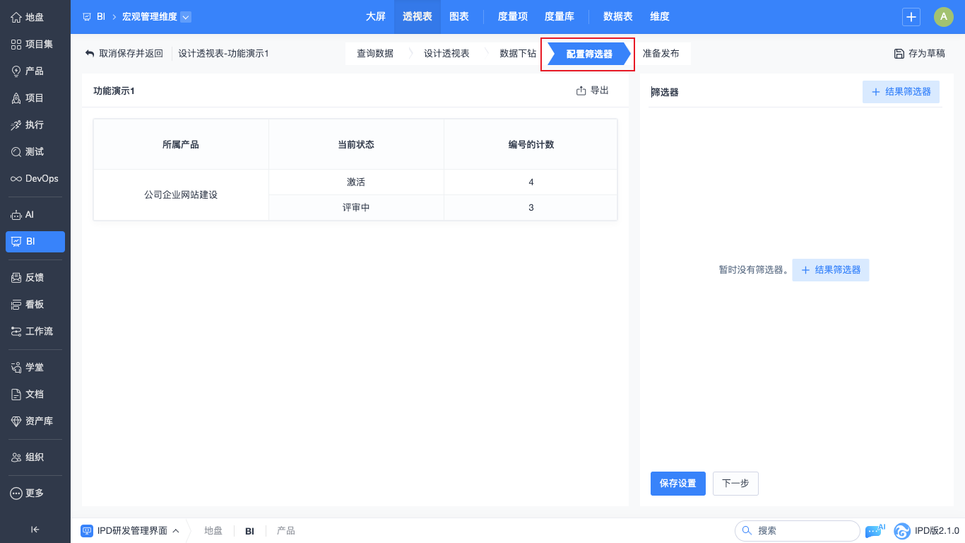 4.当配置了筛选器时,下钻条件也需要同步配置筛选器字段;