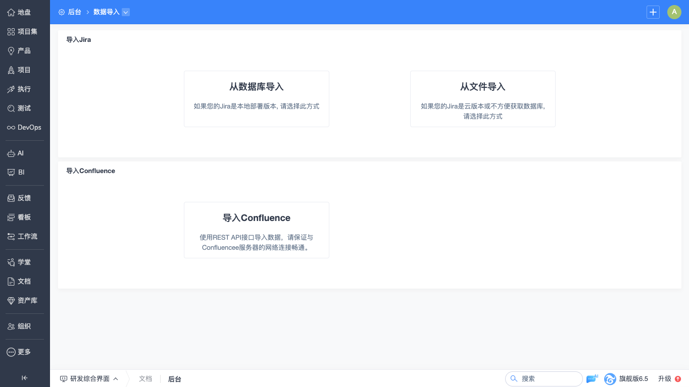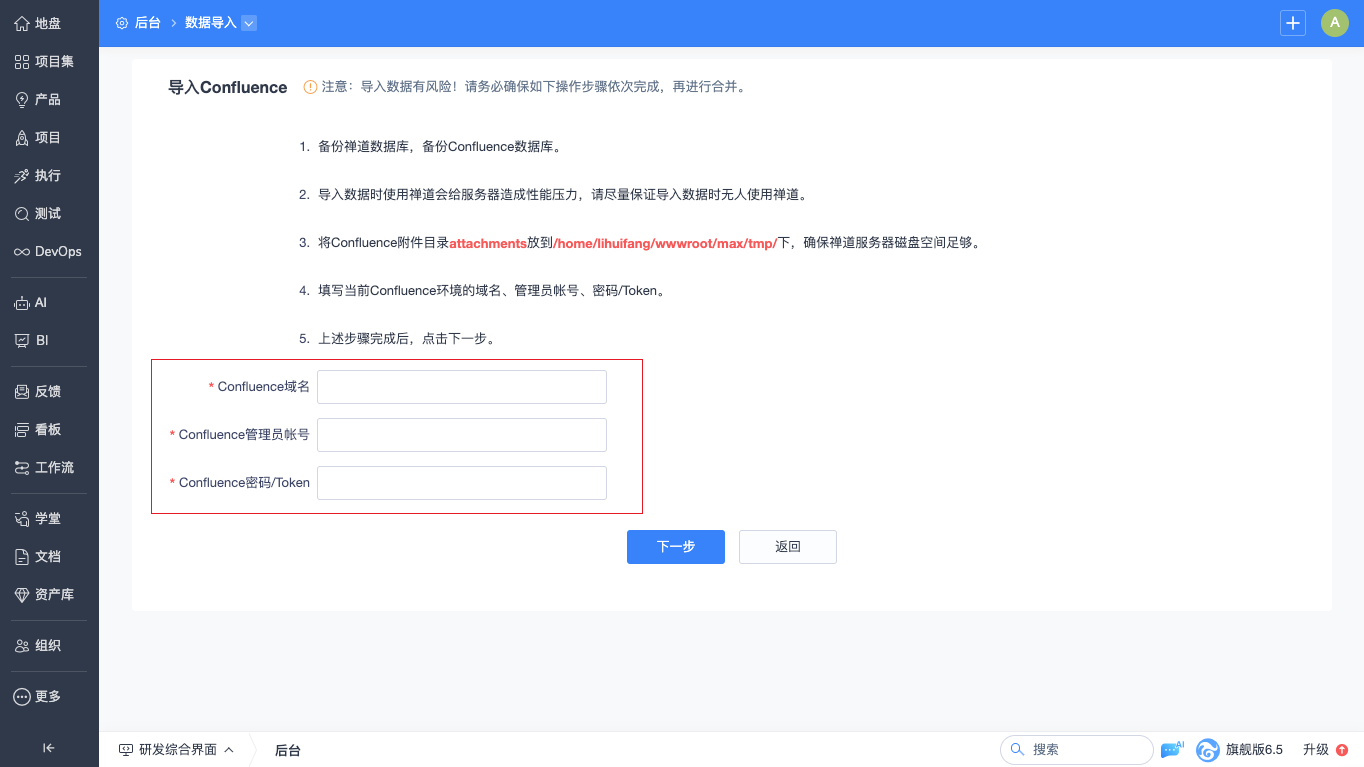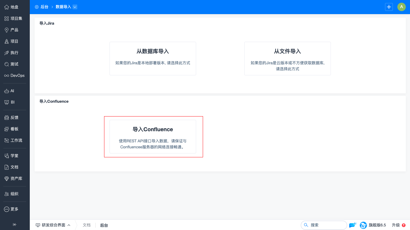 登录禅道管理员账号,在后台-数据导入中,选择导入Confluence。