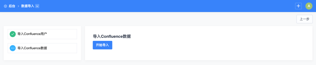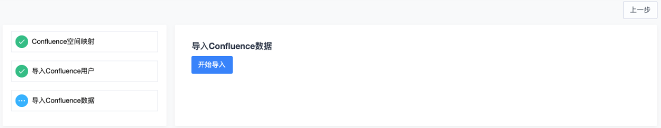 点击「上一步」,可以重新修改链接 Confluence 的信息,点击「下一步」进入导入数据页面。