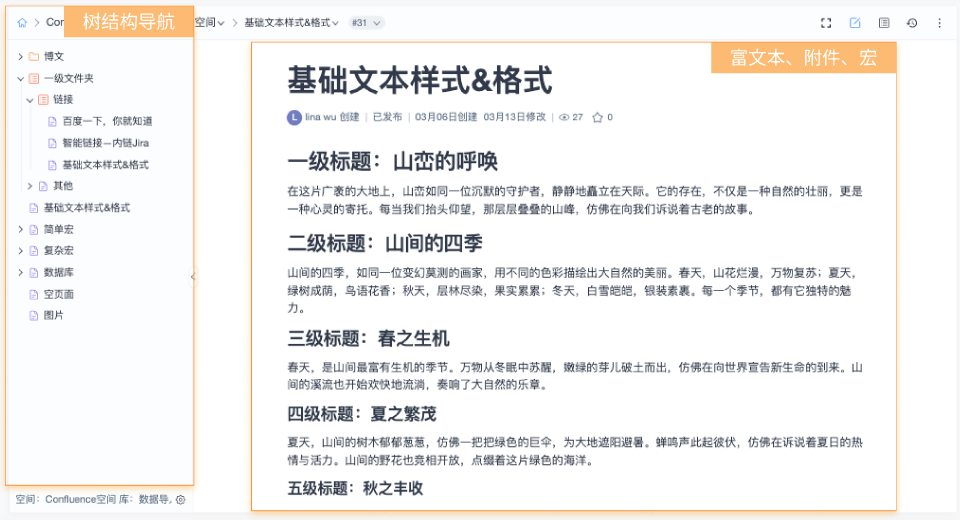 - 页面:导入的内容包括 Confluence 空间中的页面内容以及页面树结构,页面对用户的访问权限。