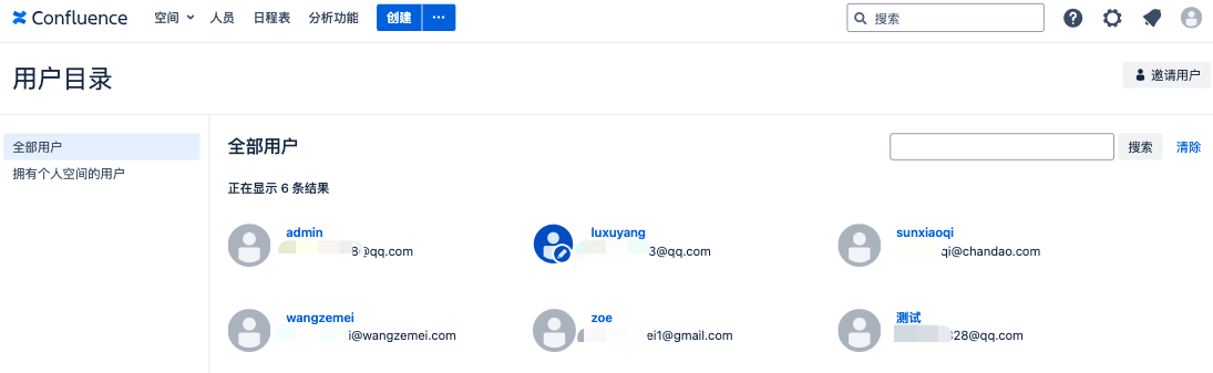 也可以在「Confluence-人员-全部用户」中查看管理员账号或者联系部署 Confluence 的负责人或团队,获取管理员账号信息。