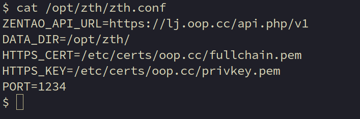 ZENTAO_API_URL 必填,禅道 API 地址,如https://zentao.oop.cc/api.php/v1 DATA_DIR 必填,数据持久化存储目录,需要自己创建一个D:/zth/data LOG_DIR 必填,日志持久化存储目录 HTTPS_KEY 选填,证书地址,填写将使用 https 服务器 HTTPS_CERT 选填,证书地址,填写将使用 https 服务器 PORT 选填,端口号,默认 1234