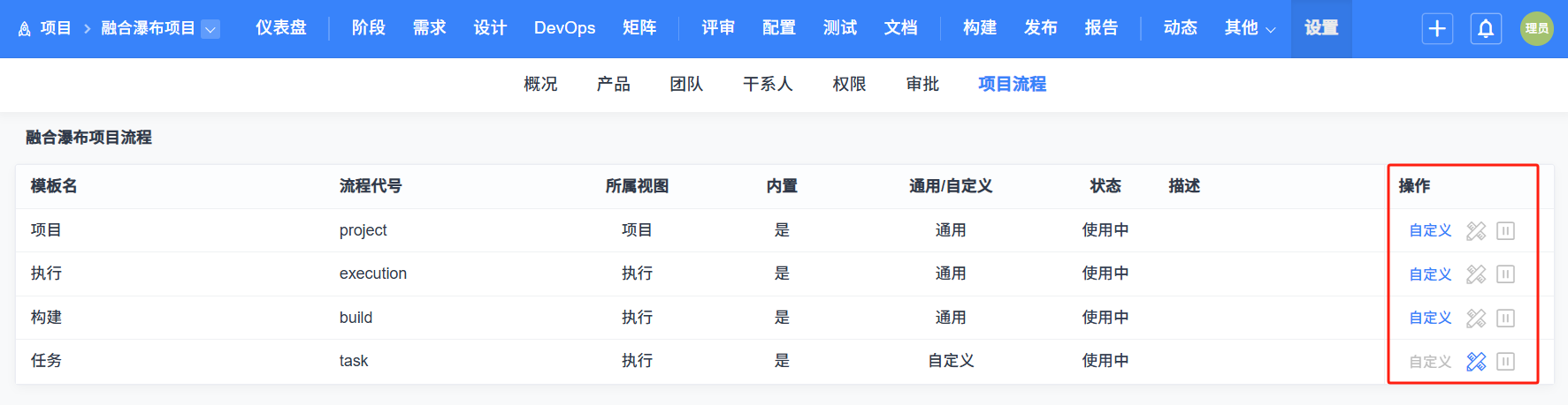 单个项目流程管理位于项目-设置-项目流程。