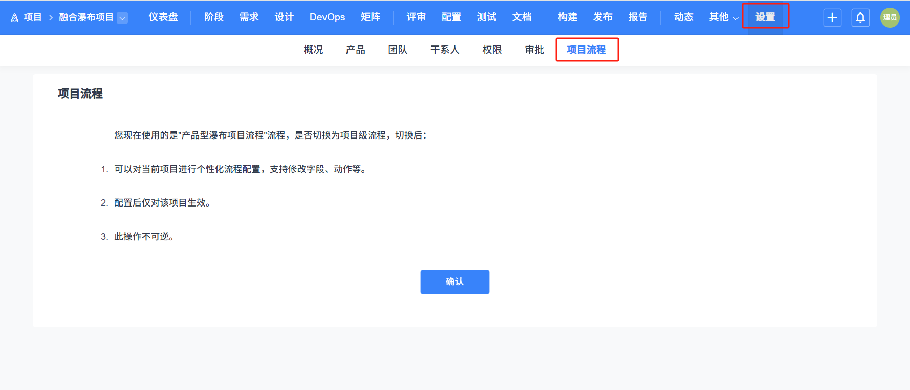 项目下的项目流程,仅对当前项目生效,在创建项目和工作流下的项目流程,均不可见。