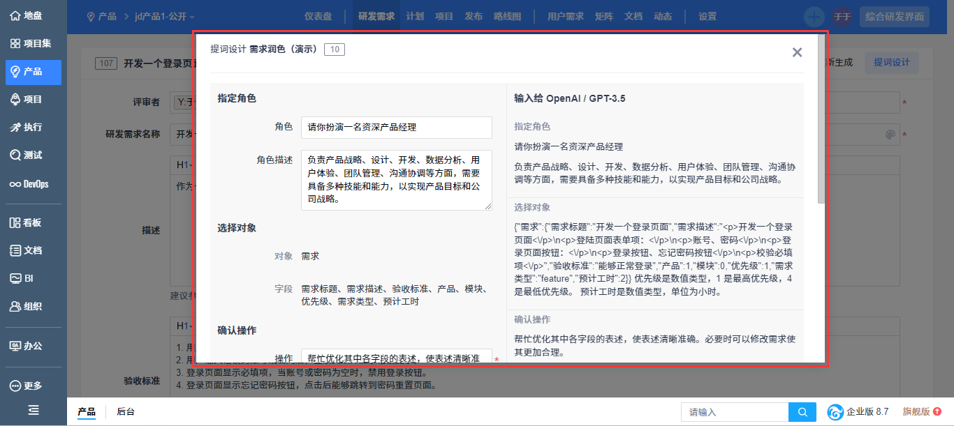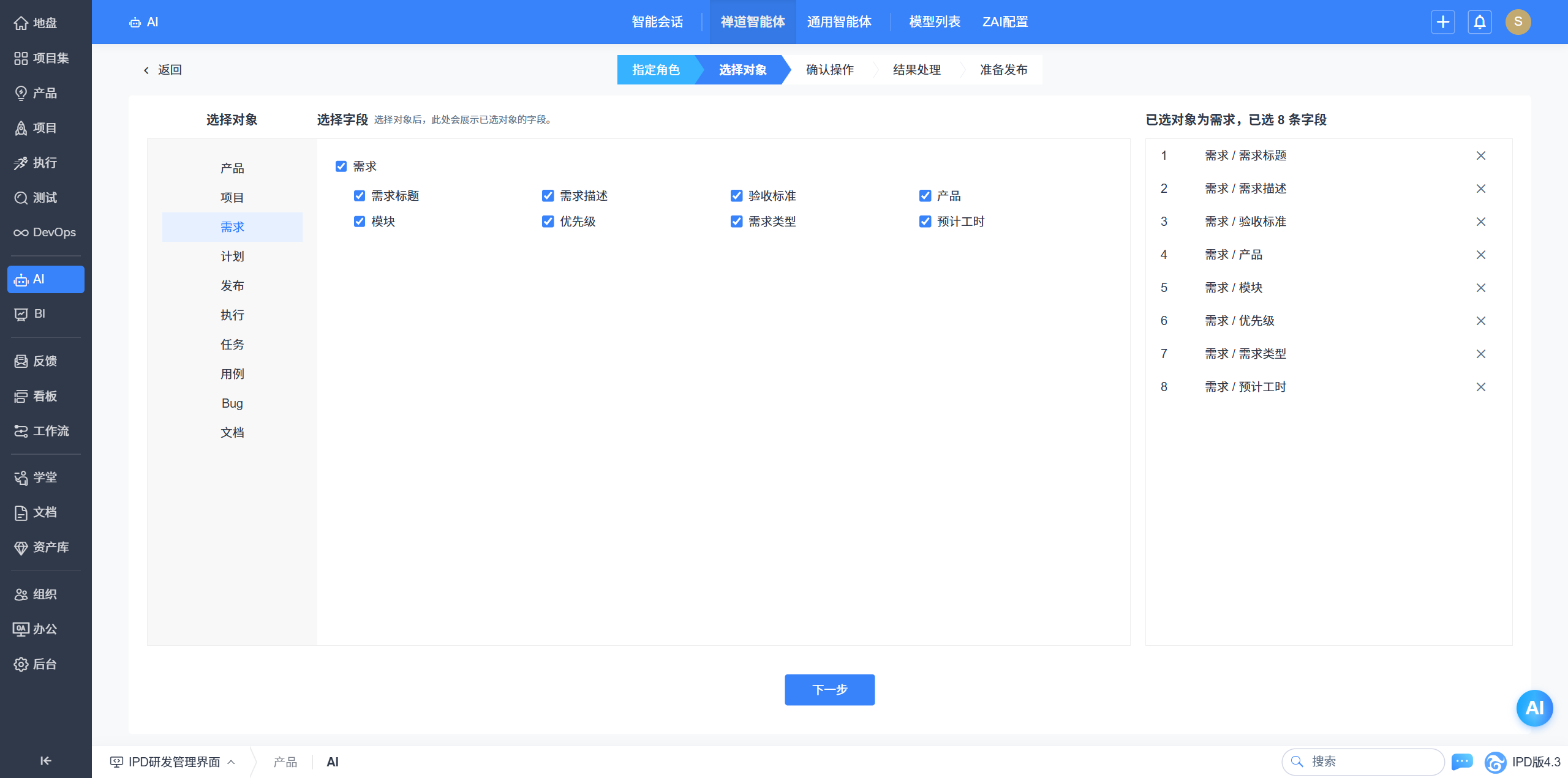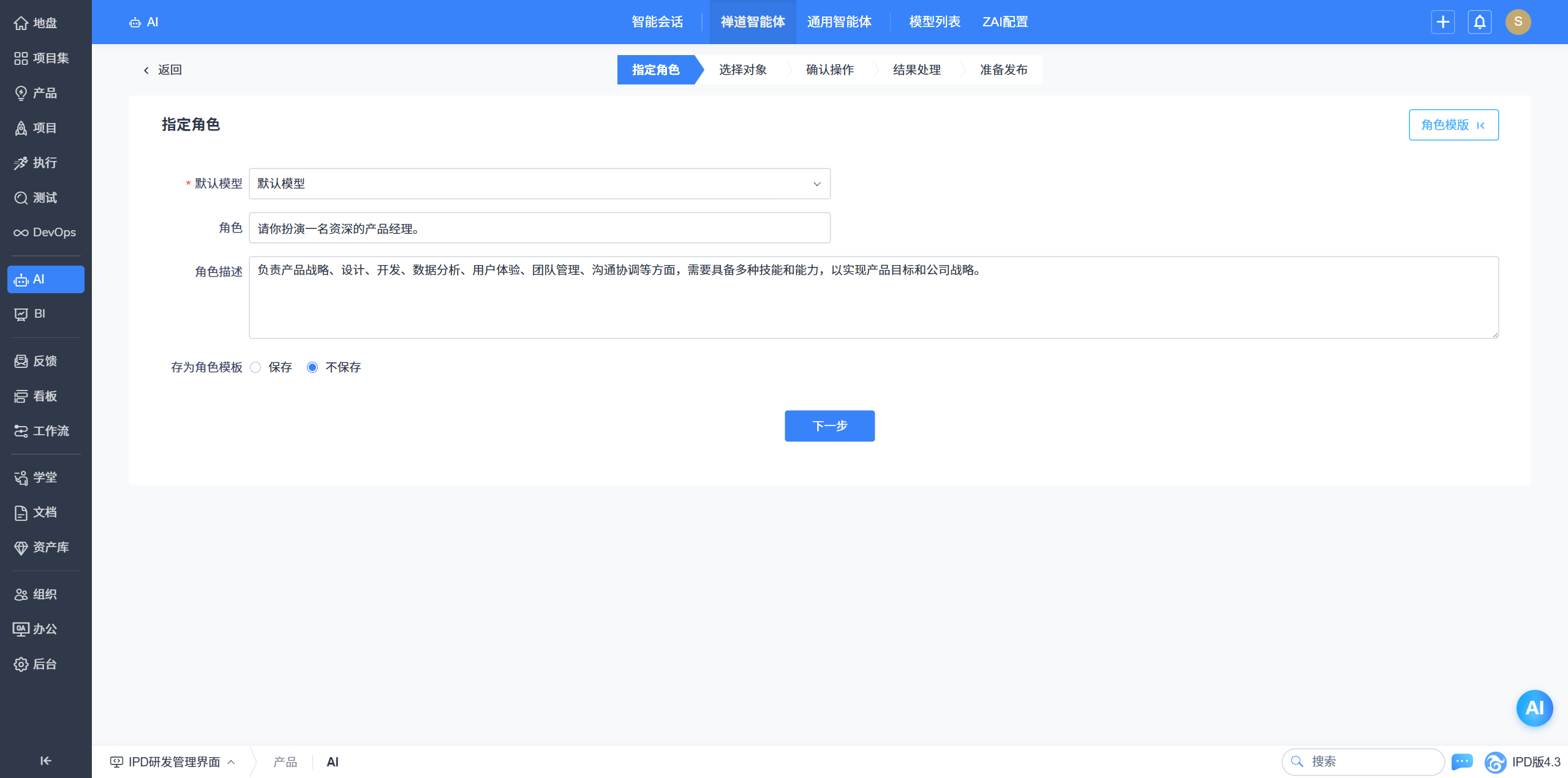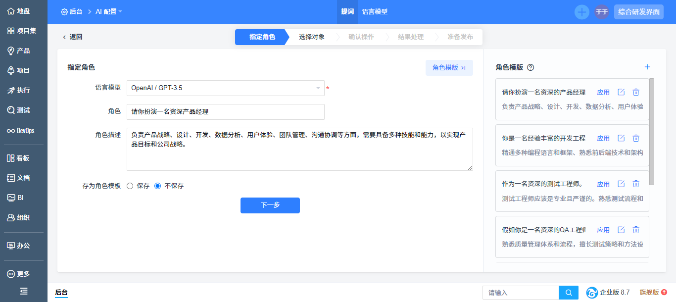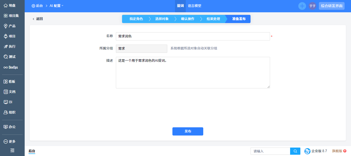 - 以流程引导的方式引导用户设计出高质量禅道智能体。