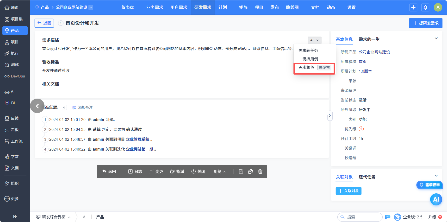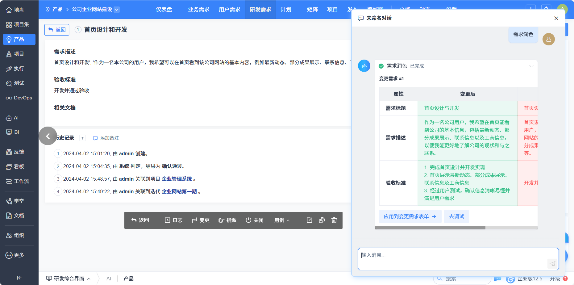 四、一键发起禅道智能体