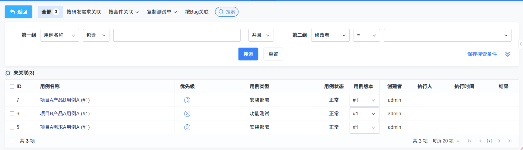 跨产品的测试单可以关联对应多个产品的用例,默认展示多个产品的用例(用户不可关联和查看没有权限的产品下的用例)。