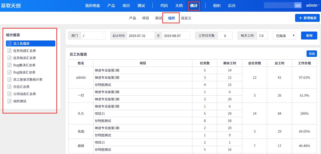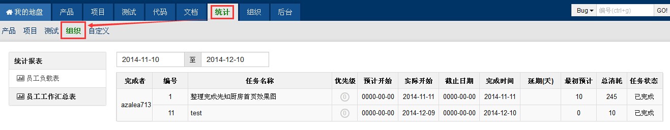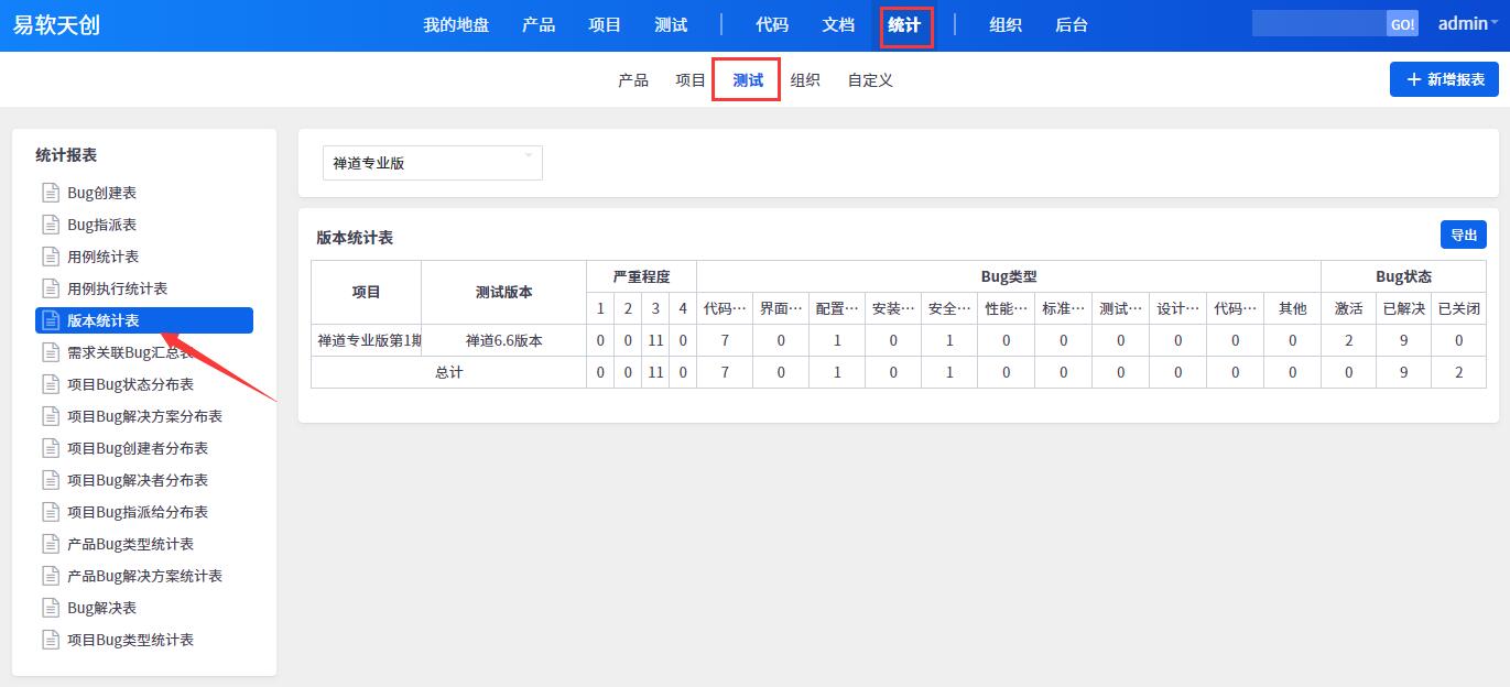 统计视图包含员工工作汇总表、用例统计表 和 版本统计表。方便导出数据,总结汇报工作。