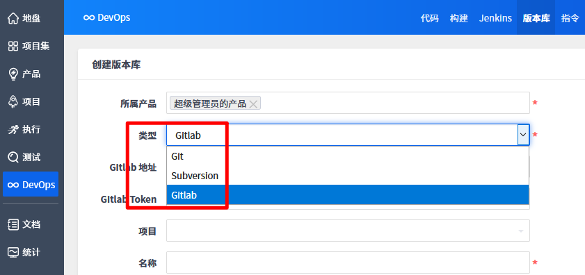 在类型点击下拉选择GitLab。
