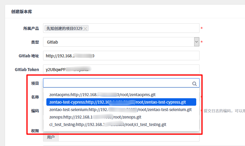填写GitLab地址和Token后,项目会自动同步显示GitLab里所有项目。