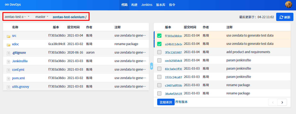 同步完成后可以在代码里查看,也可以在版本库的列表里查看到GitLab类型的版本库。
