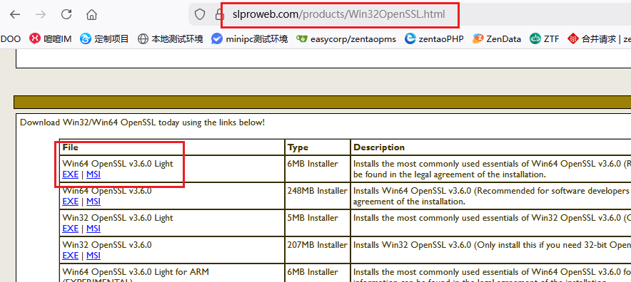 下载地址:https://slproweb.com/products/Win32OpenSSL.html