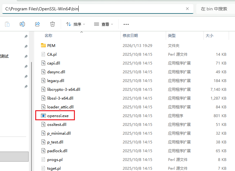 安装完成后,openssl被默认安装在C:\Program Files\OpenSSL-Win64\bin