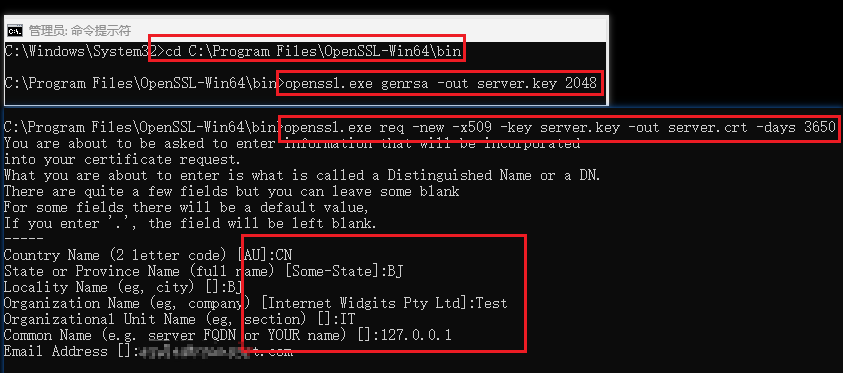 以管理员身份运行cmd后,输入以下命令生成https证书文件