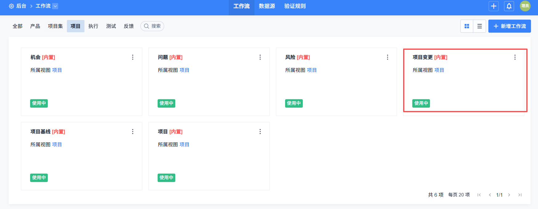 如果想要统一修改系统下的项目变更功能,可以在“后台”-“工作流”-“项目变更”修改;如果要修改单个项目流程下的项目变更功能,则在“后台”-“项目流程”-“工作流”-“项目变更”下修改。工作流使用手册