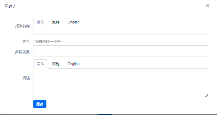 5、如果报表已经设计好了,可以保存报表,点击保存,输入名称和类目。