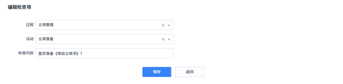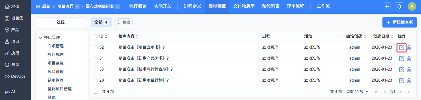 在质量保证检查项列表中,点击操作列中的“编辑”按钮,可进入编辑页面对检查项进行修改。