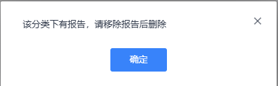 分类下有报告时,删除分类有提示信息:分类下有报告不能删除。