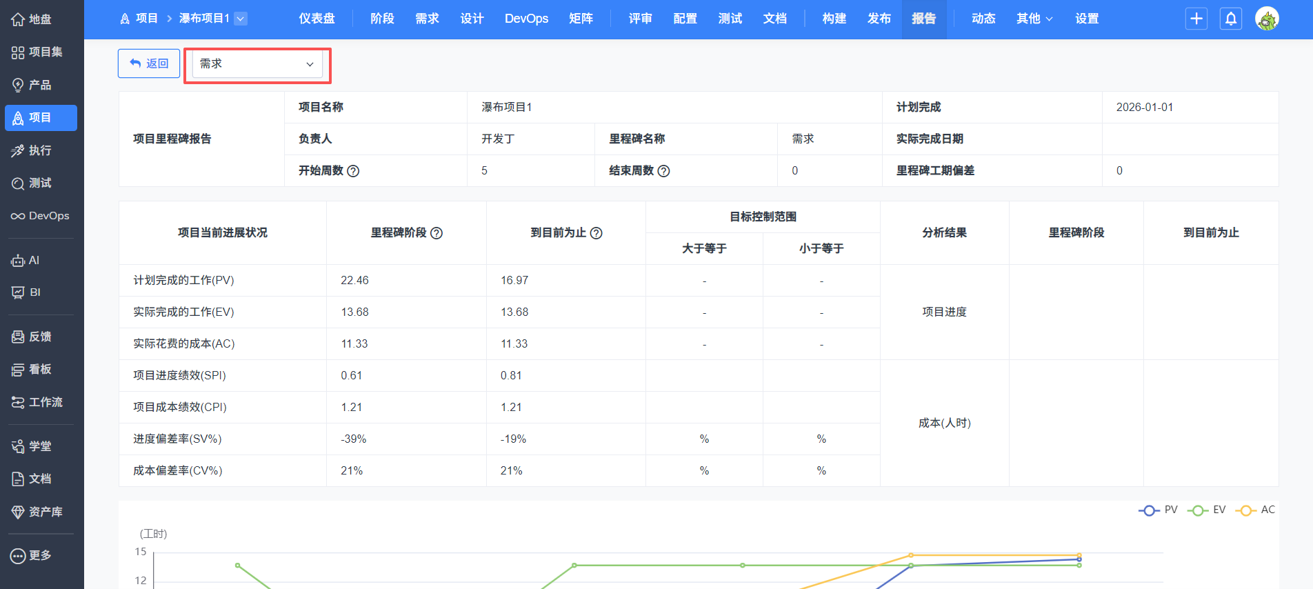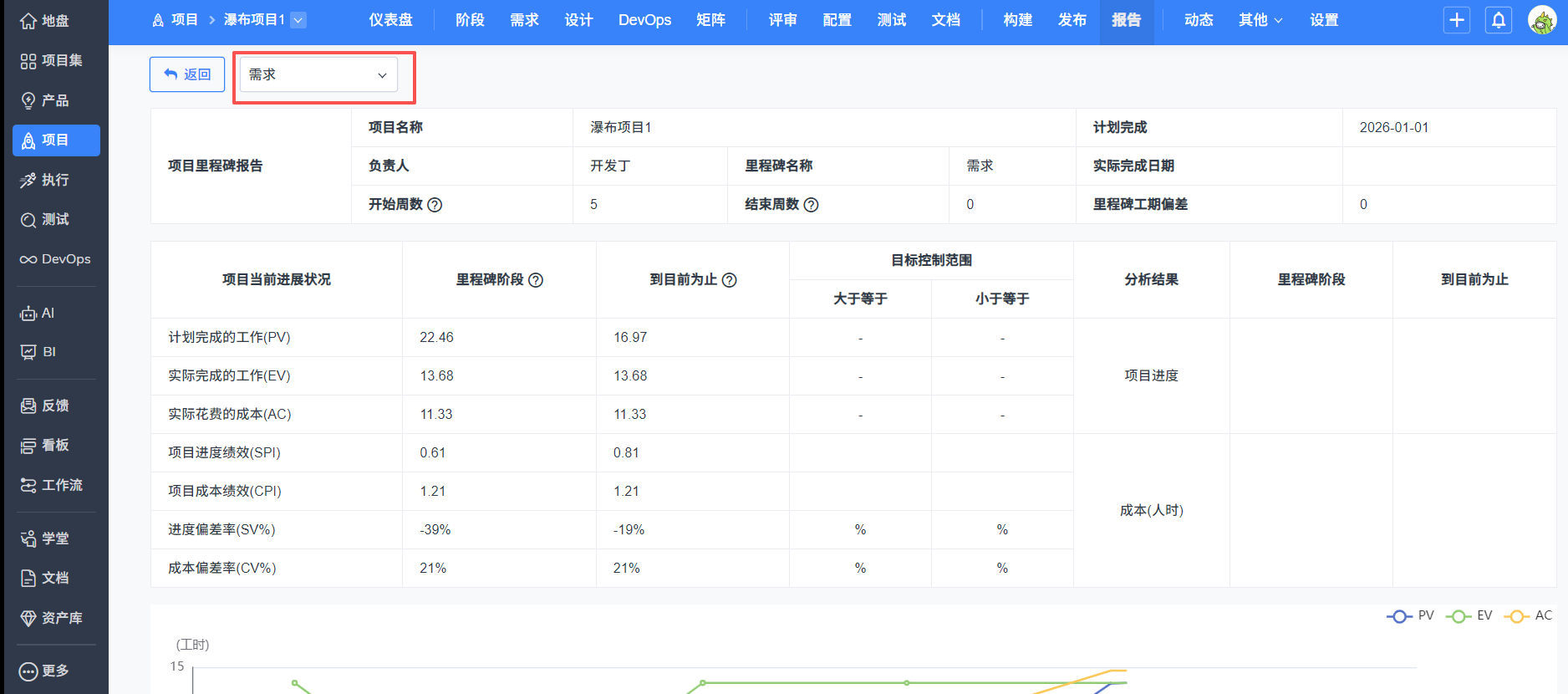 里程碑报告功能会升级到项目-报告下报告列表的里程碑报告分类下,名称为里程碑报告。 项目下只有一篇里程碑报告,一直展示项目下最新的数据。