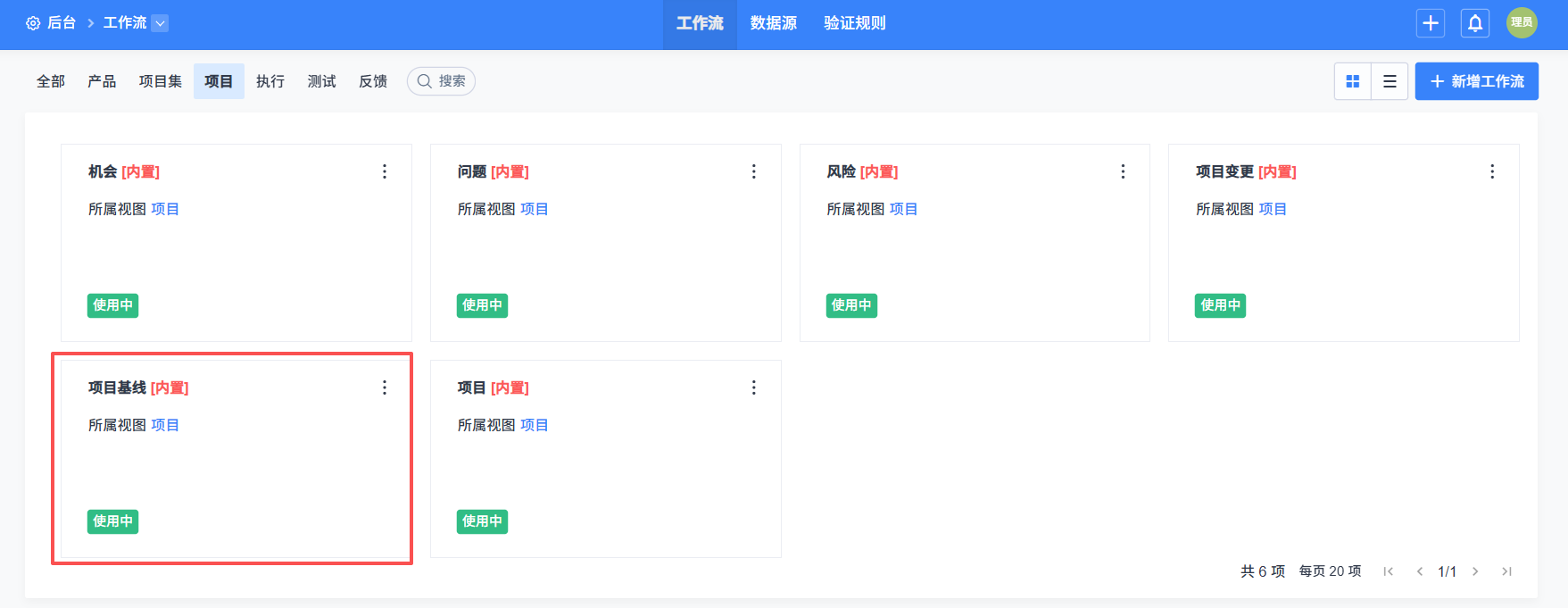 如果想要统一修改系统下的基线功能,可以在“后台”-“工作流”-“基线”修改;如果要修改单个项目流程下的基线功能,则在“后台”-“项目流程”-“工作流”-“基线”下修改。(工作流使用手册)