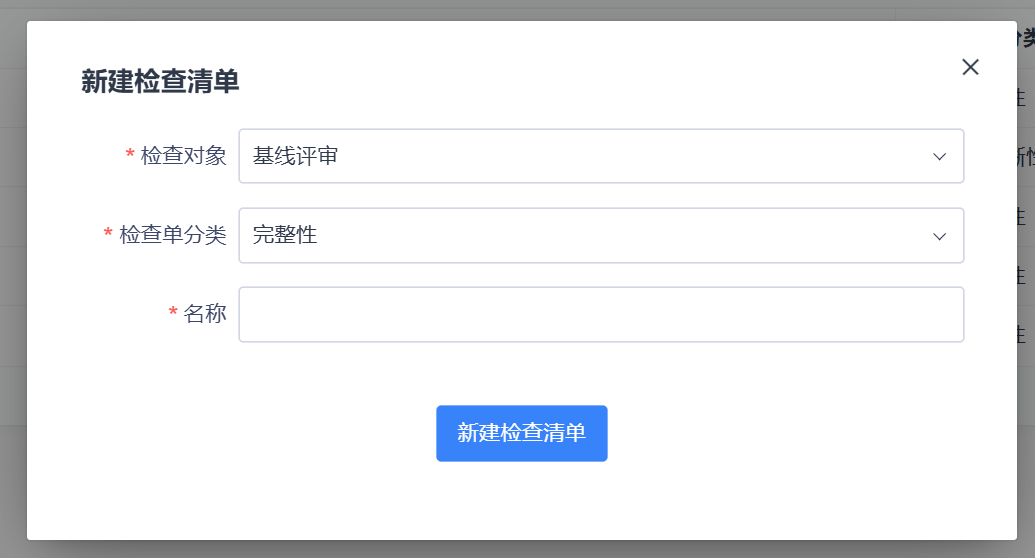 用户在项目评审时,可以根据“检查清单”逐一评审并提出问题,规范评审的可操作性。左侧展示全部的评审流程,可以点击某一个评审流程查看对应的检查清单。