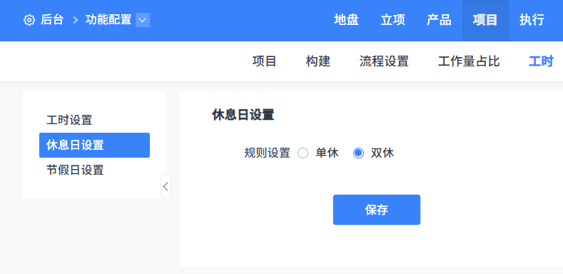 在工时设置中可以进行休息日设置,可以设置单休或双休。