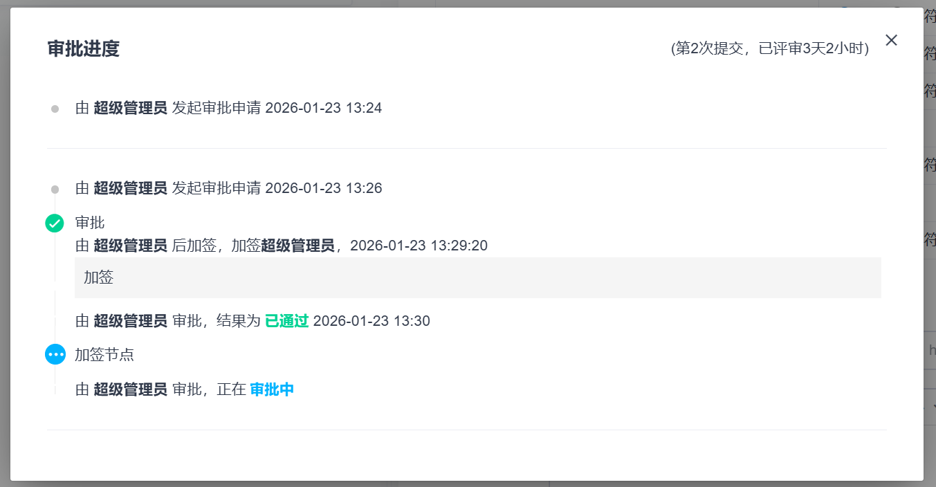 点击【审批进度】按钮,可以查看本次评审的进度。