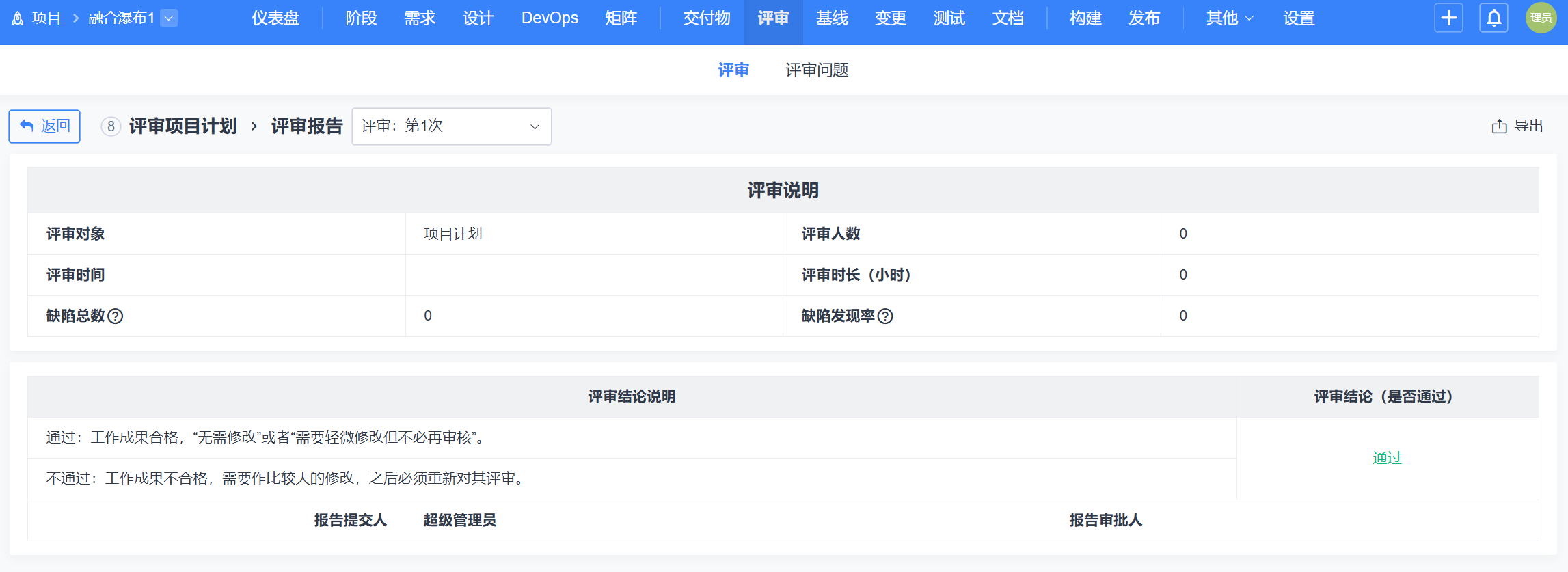- 基线评审:瀑布模型、融合瀑布模型、IPD模型支持使用。