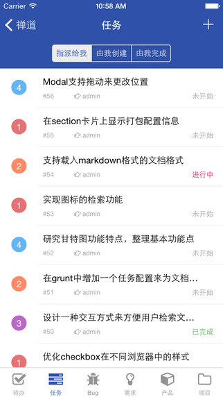 这样在移动设备上也能够方便跟踪项目任务和bug,管理需求和产品。
