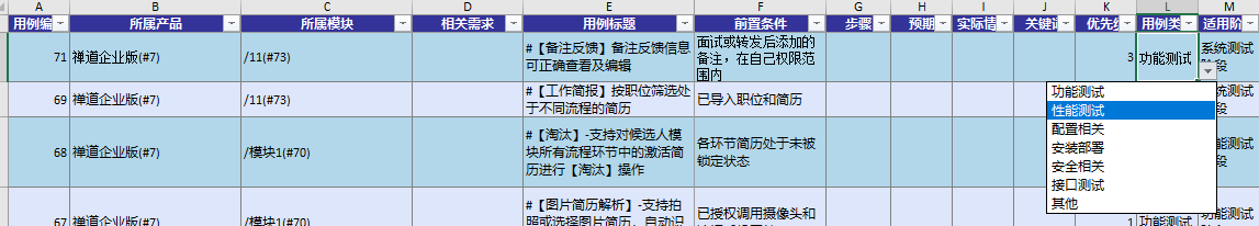 像“优先级”、“用例类型”这些固定的数据,直接填写就可以了。