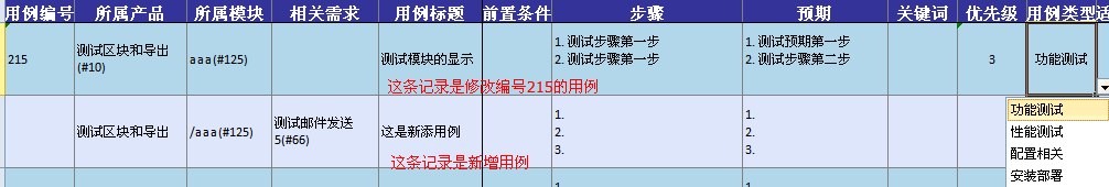 如果不是使用的模板文件,如果条目的用例编号有值,那么该条目是编辑相应编号的用例。如果没有用例编号,这是新增一条用例。
