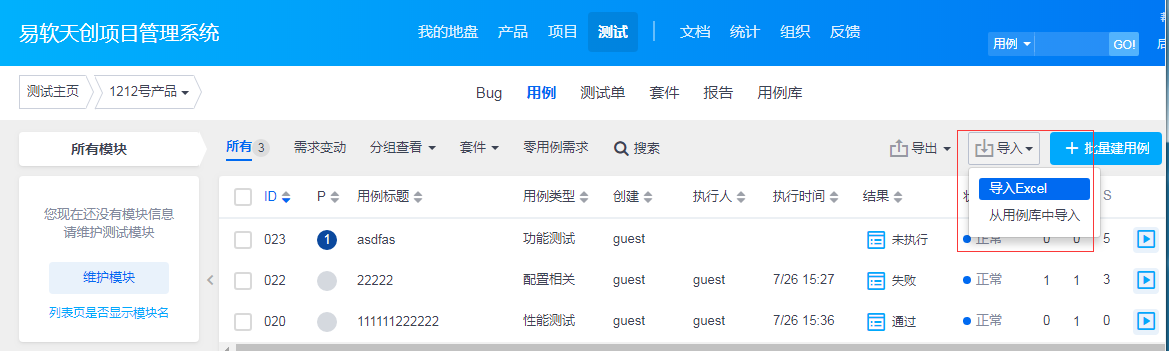 4、“用例类型”、“用例标题”字段是必填内容,如果没有填写系统会忽略这条记录。